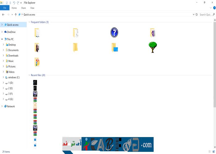 در ویندوز ۱۰ وقتی بر روی File Explorer کلیک می شود صفحه Quick Access باز می شود.