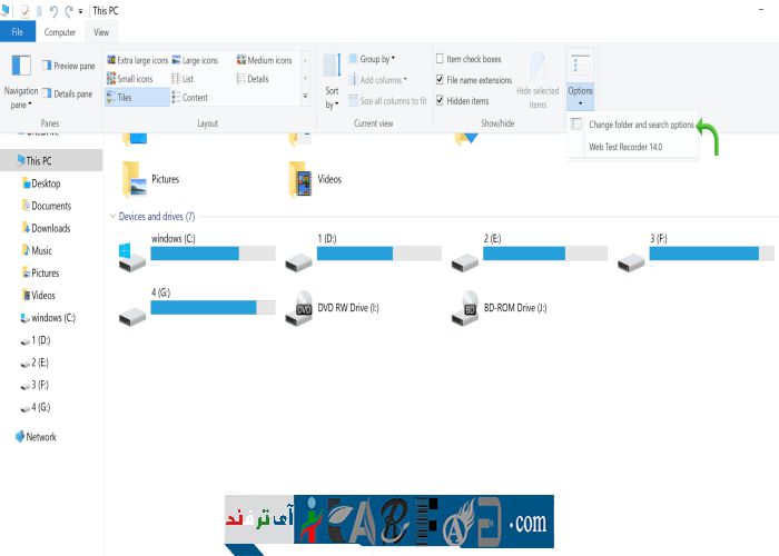 برای تغییر این صفحه کافی است مانند عکس زیر Change Folder Option را انتخاب کنید.