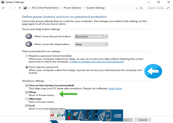 رفع محدودیت درخواست پسورد در حالت Sleep