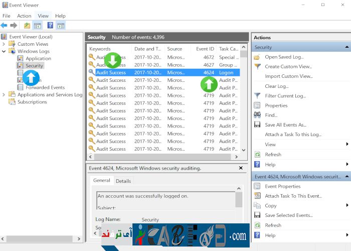 اکنون کلمه Event Viewer را در ویندوز جستجو کنید و مانند عکس زیر به قسمت Security بروید.