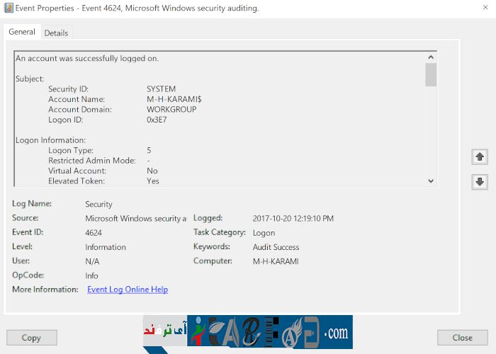در وسط صفحه گزینه هایی که ID آن ها برابر ۴۶۲۴ می باشد موفق به ورود به رایانه شما شده اند که با کلیک بر روی آن ها می توانید ویژگی های بیشتری از آن را ببینید.