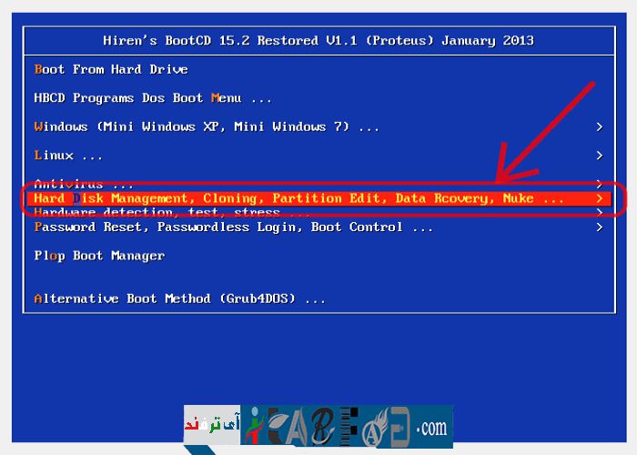 برای صرفه جویی در حجم اینترنت فقط گزینه ای که برای تغییر پارتیشن مورد نیاز است قرار داده شده است. دقت داشته باشید که این روش در بعضی مواقع خاص باعث پاک شدن اطلاعات می شود. تمام فایل های دانلود شده را در یک پوشه قرار دهید و سپس از حالت فشرده خارج کنید. اکنون فایل iso ایجاد شده را توسط نرم افزارهایی مانند Power Iso بر روی فلش یا CD رایت کنید. بعد از بوت شدن سیستم گزینه مورد نظر در عکس زیر را انتخاب کنید.