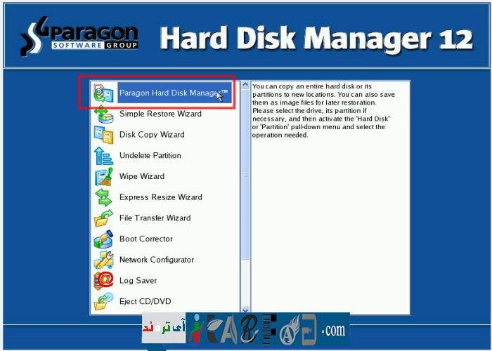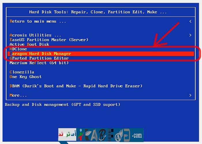 اکنون گزینه Paragon Hard Disk Manager را انتخاب کنید.
