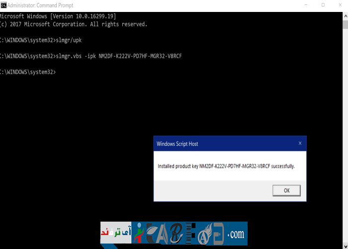 اکنون دستور slmgr/upk را در آن تایپ کنید و Enter را بزنید.