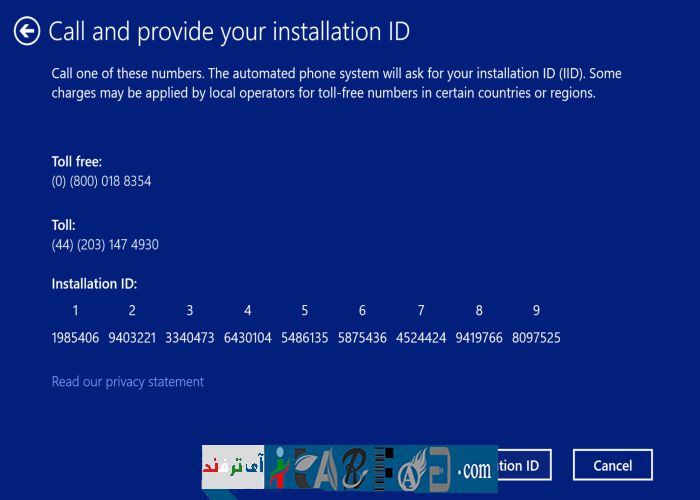 اکنون ویندوز به شما یک Installation ID می دهد که باید آن را یادداشت کنید.