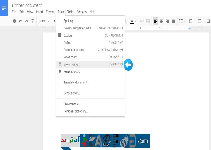 سپس از سربرگ Tool گزینه Voice Typing را انتخاب کنید.