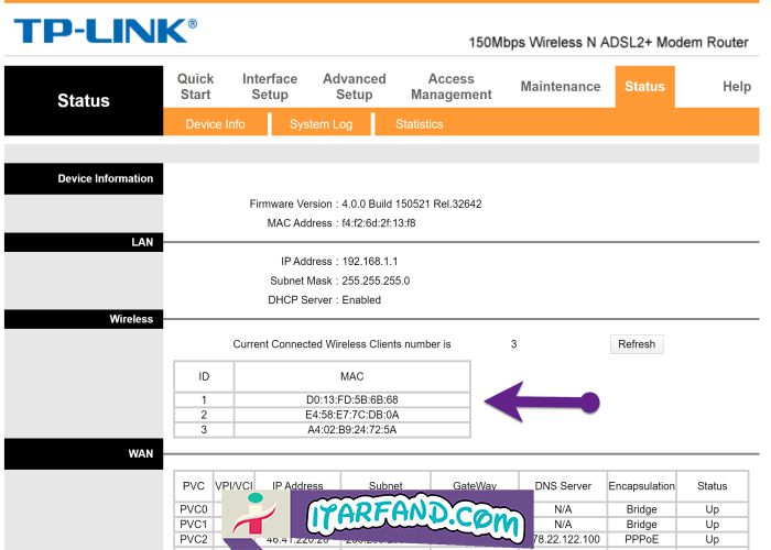 برای بدست آوردن mac افراد نیز میتوانید از همان صفحه اول که لیست تمام افراد متصل نشان داده شده بود استفاده کنید.