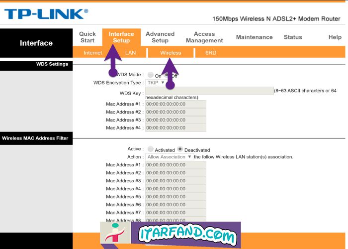 اکنون به سربرگ Interface Setup و سپس Wireless بروید.