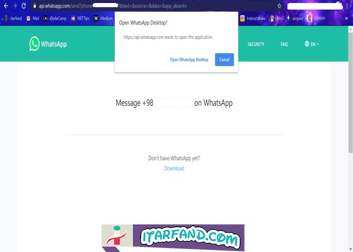 پیام دادن به فرد واتساپ بدون نیاز به ذخیره مخاطب