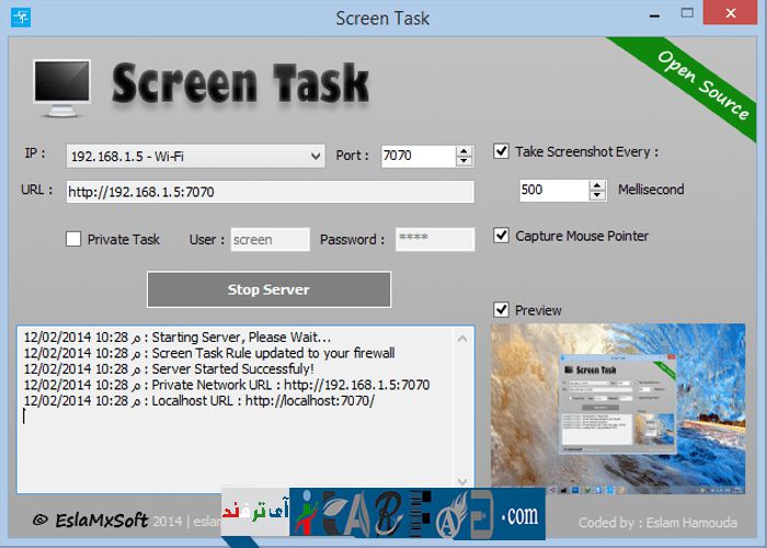 ابتدا نرم افزار Screen Task که کدباز نیز می باشد را از (این لینک) دانلود کنید. همچنین برای توضیحات بیشتر می توانید (این لینک) را مشاهده کنید.