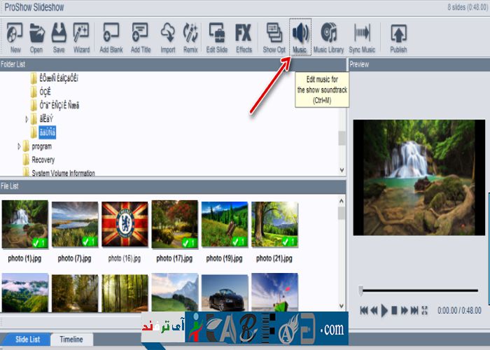 برای افزودن عکس های مورد نظر ابتدا از قسمت Folder List به پوشه مورد نظر بروید و بر روی عکس هایی که می خواهید کلیک کنید و یا آن ها را کشیده و در قسمت سفید رنگ رها کنید.