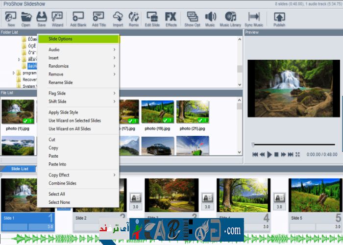 برای قرار دادن افکت بر روی عکس راست کلید کرده و گزینه Slide Option را انتخاب کنید.