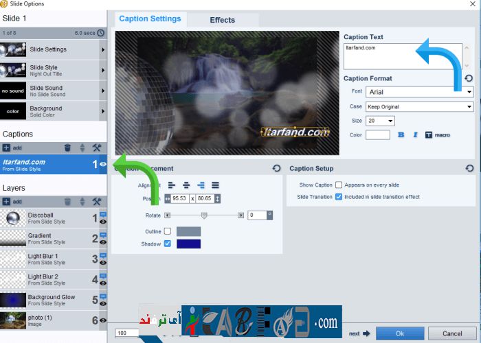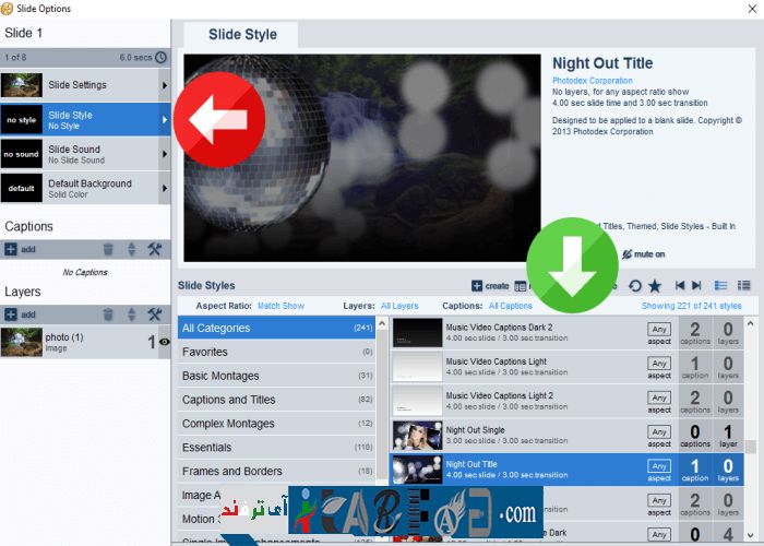 برای تغییر استایل پایانی هر عکس و شروع عکس بعدی می توانید قسمت مشخص شده در عکس زیر را انتخاب کنید.