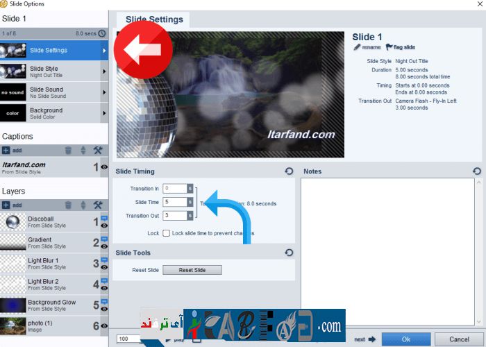 برای تغییر مدت زمان نمایش هر عکس مانند عکس زیر عمل کنید.