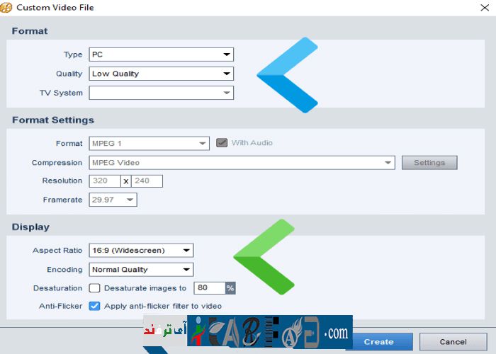 اکنون با توجه به کیفیت و حجم کلیپ مورد نظر می توانید قسمت های مشخص شده در عکس زیر را تغییر دهید.